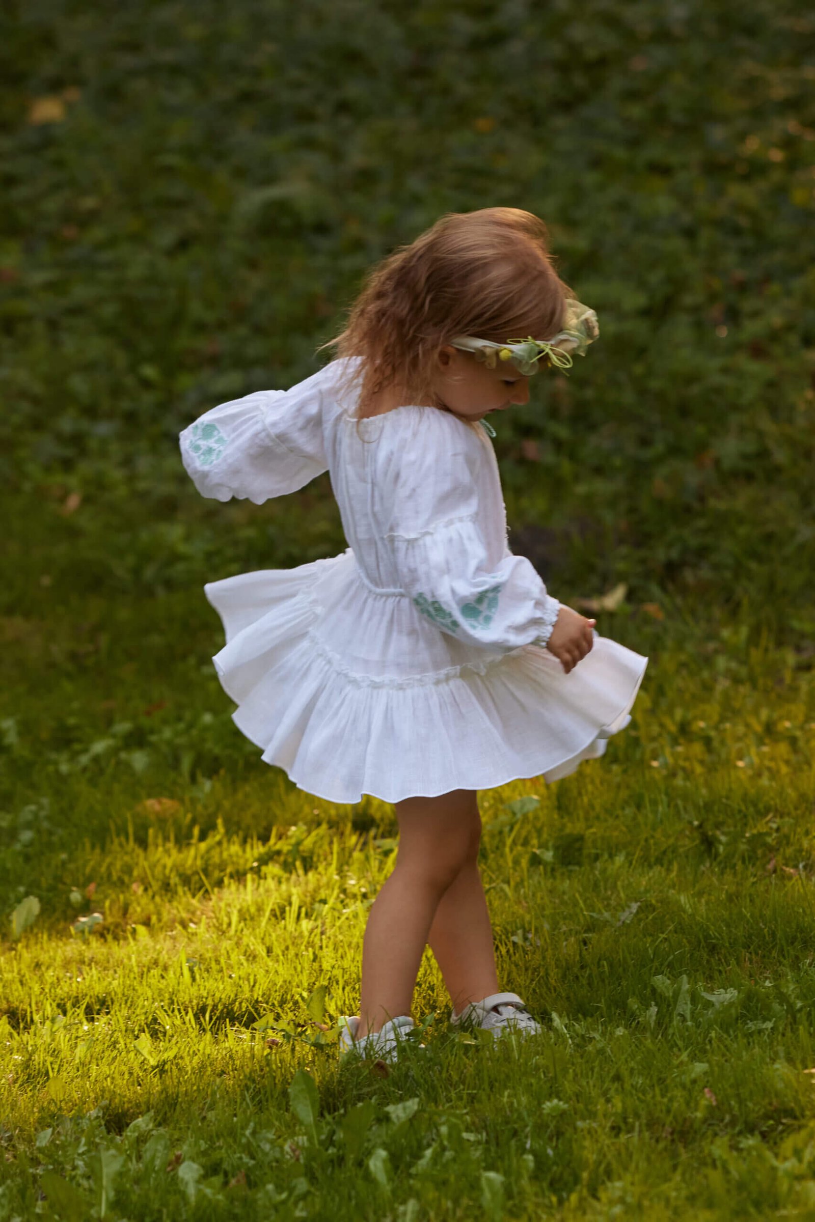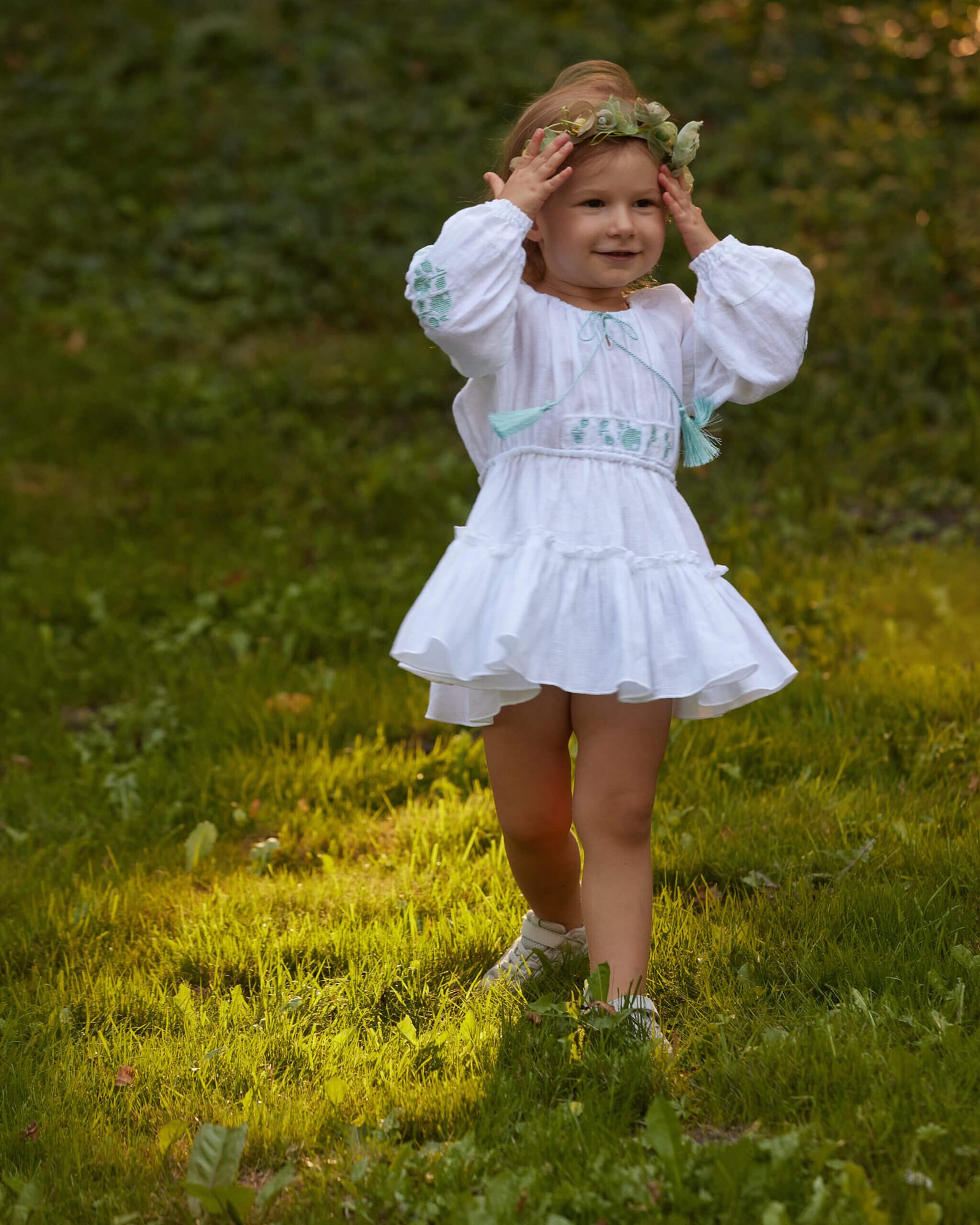 Încântă-ți micuța cu această rochie-ie vaporoasă pentru fetițe, confecționată din in natural de cea mai bună calitate.